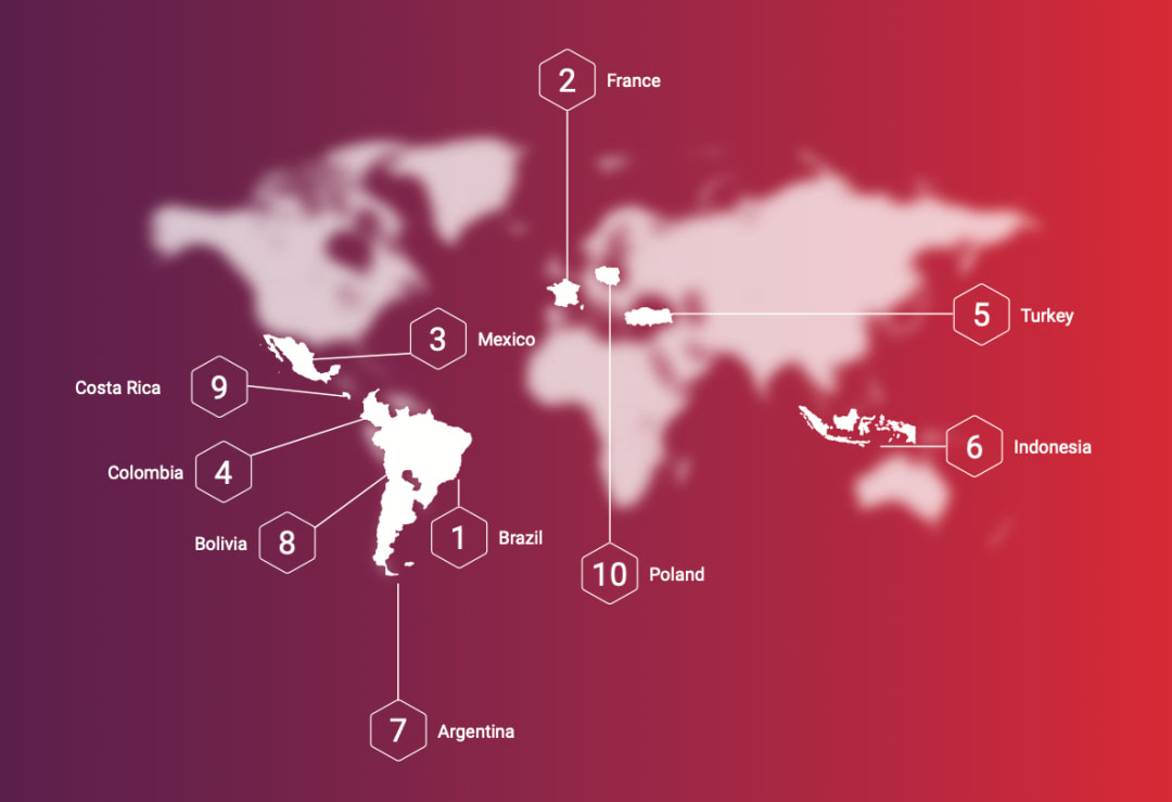 — 全球十大商業(yè)復(fù)雜性最高的司法管轄區(qū)為:巴西、法國、墨西哥、哥倫比亞、土耳其、印度尼西亞、阿根廷、玻利維亞、哥斯達(dá)黎加、波蘭。