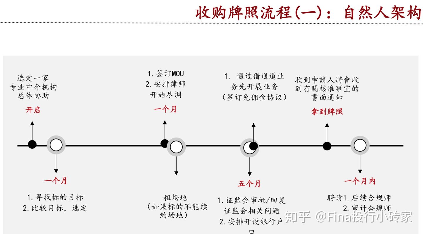 除了申請,收購成為入場港市證券公司最普遍最快捷最簡單粗暴的方法。最快一個月即可完成整個變更及SFC備案。當然,找對人真的真的很重要,否則花了冤枉錢不說,還容易導致不可逆的結果,直接影響收購和備案成功的概率。