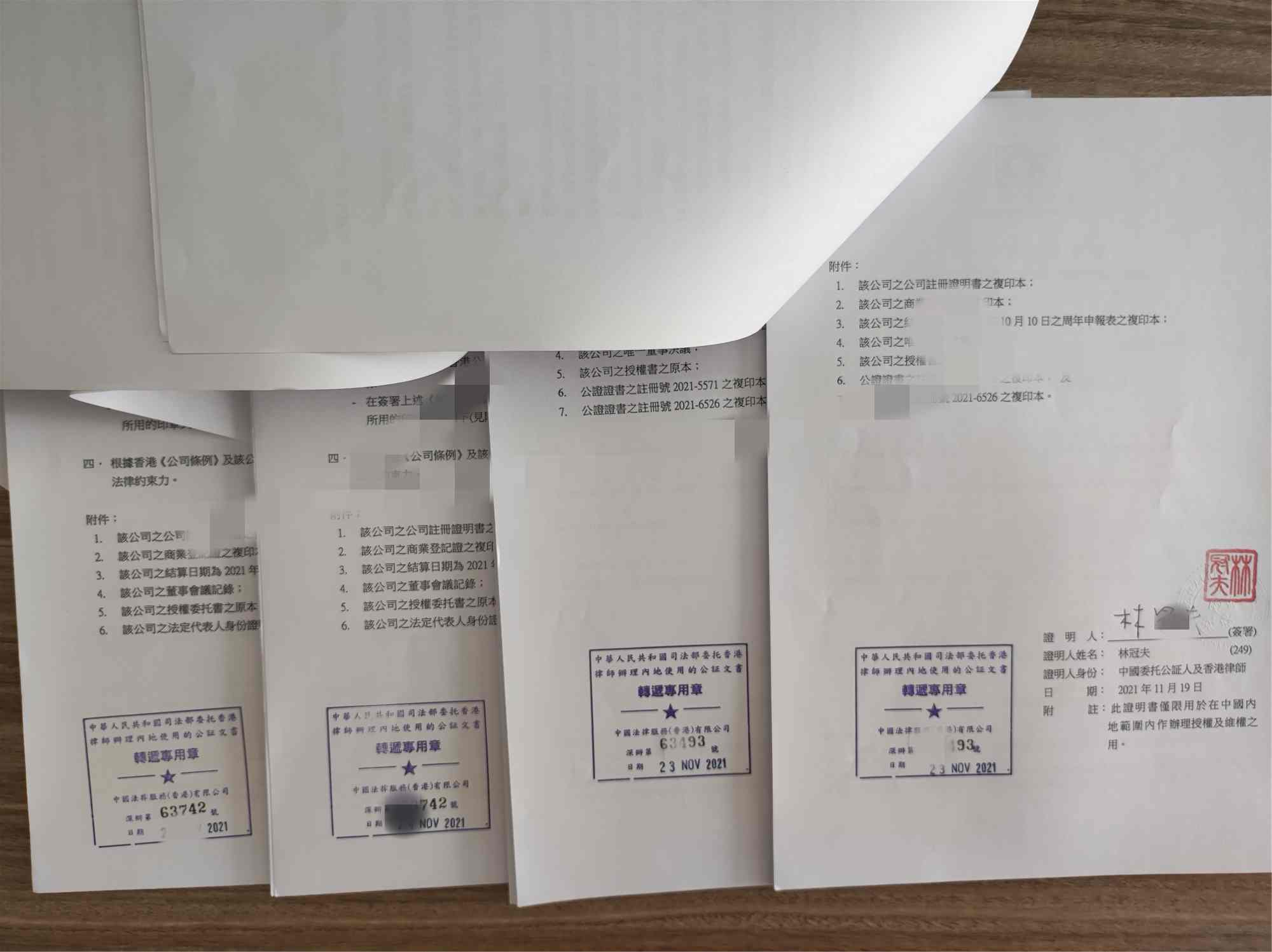 需將前述文件一并送交中國司法部指定的中國委托公證人(相關(guān)的律師名單司法部每年均有公告)進行公證再交由中國法律服務(wù)(香港 )有限公司加蓋轉(zhuǎn)遞專用章,前述文件只有在履行了這兩個手續(xù)后方能在中國大陸地區(qū)作為正式的法律文件使用。