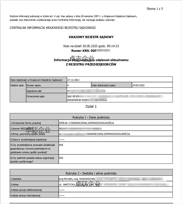 4、經(jīng)營(yíng)范圍:在波蘭注冊(cè)公司,可從事生產(chǎn)、銷售、服務(wù)和進(jìn)出口等任何商業(yè)活動(dòng)。